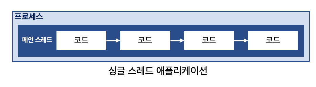 만약, 자바로 작성된 프로그램의 소스 코드가 싱글 스레드로 작성되었다면, 해당 프로그램이 실행될 때 메인 스레드만을 가지는 싱글 스레드 프로세스가 될 것이다.