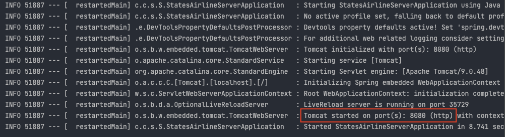 로컬 환경에서 실행했을 때 로컬 PC의 IP 주소로 접근하여 8080번이 통로를 통해 실행 중인 서버를 확인할 수 있다. 이때 이미 사용 중인 포트는 중복해서 사용할 수 없다.