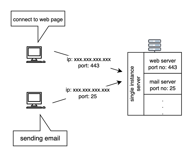 위 그림은 한 서버 인스턴스에서 웹 서버와 메일 서버 두 개를 동시에 실행 중인 상황을 뜻한다.