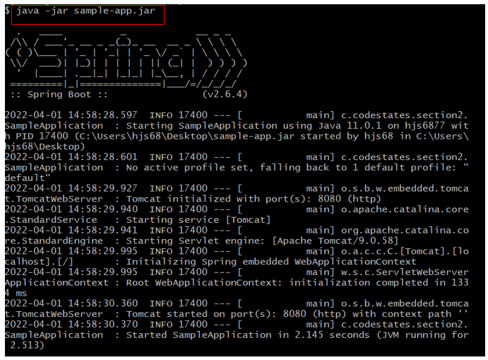 java -jar Jar파일.jar 명령어를 통해 애플리케이션을 실행할 수 있다.