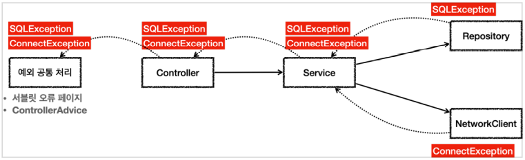 - 하지만 Service와 Controller는 SQLException, ConnectException과 같은 심각한 문제들을 처리할 방법이 없다.