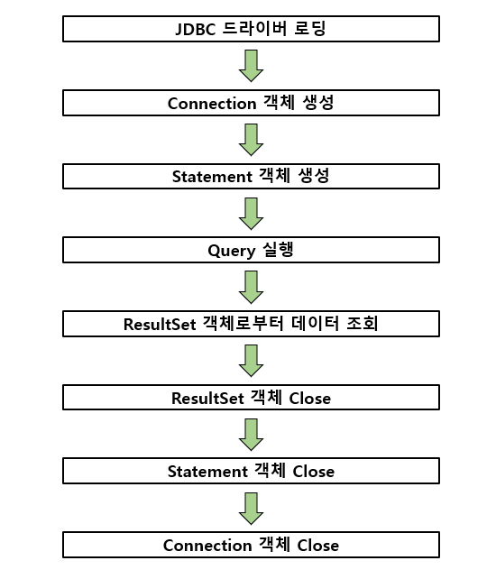 JDBC API를 사용하기 위해서는 JDBC 드라이버를 먼저 로딩한 후 데이터베이스와 연결하게 된다.