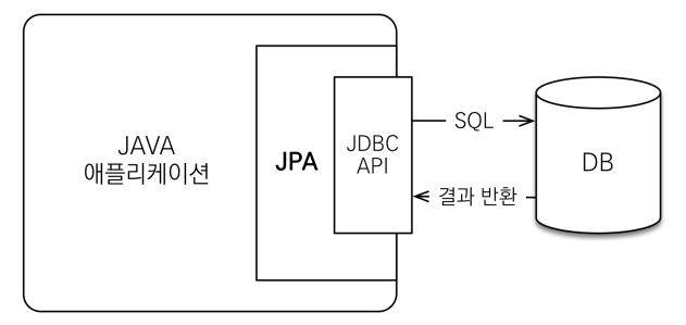 JPA는 자바 애플리케이션과 JDBC 사이에서 동작하며, 자바 인터페이스로 정의되어 있다.
