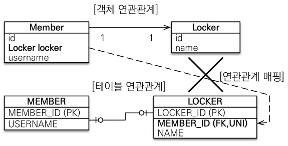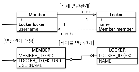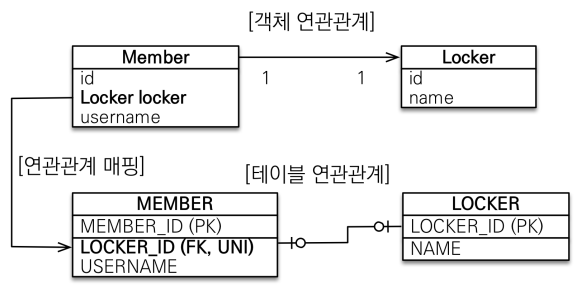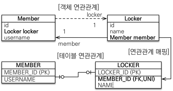 - Member가 주인이고, LOCKER 테이블에 외래 키가 있는 상황이다.