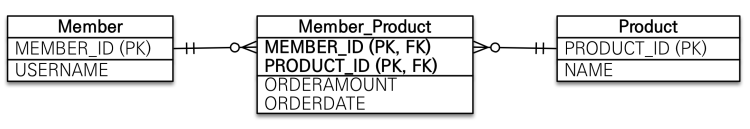 - 따라서 다(N)에 해당하는 MemberProduct에 외래 키를 가지고 있으며, 주인에 해당한다.