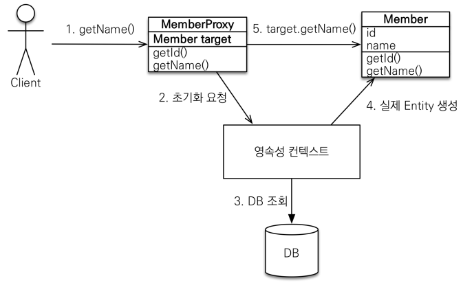 - 초기화되면 프록시 객체를 통해서 실제 엔티티에 접근하는 것이다.