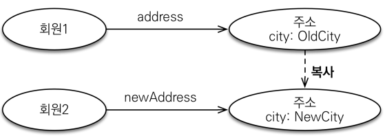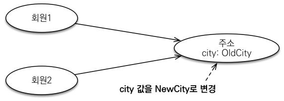 값 타입의 실제 인스턴스 값을 공유하는 것은 예상치 못한 곳에서 문제가 발생할 수 있다.