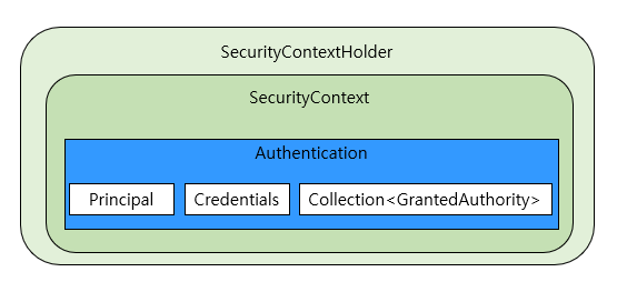 - SecurityContext가 인증된 Authentication 객체를 포함하고 있으며, SecurityContext는 SecurityContextHolder에 속해있다.