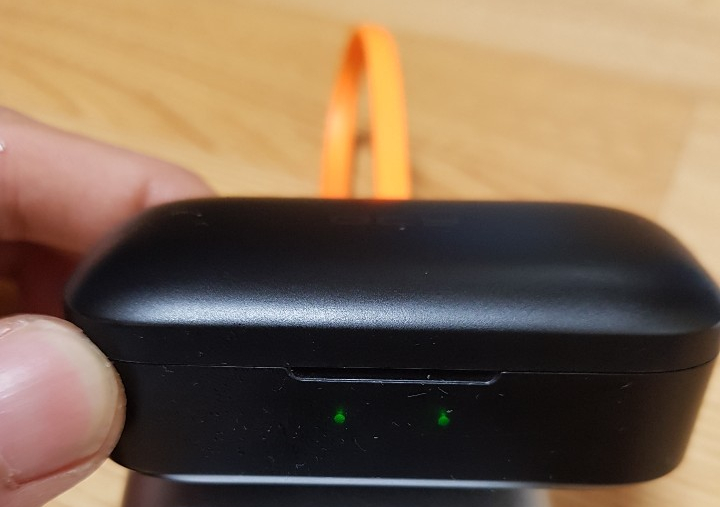 케이스에 usb를 연결시키면 저렇게 케이스 앞쪽에도 불빛이 들어오더라고요. 역시 충전 중일 때는 빨간불, 완충 시에는 초록불이 들어왔다가 꺼집니다.