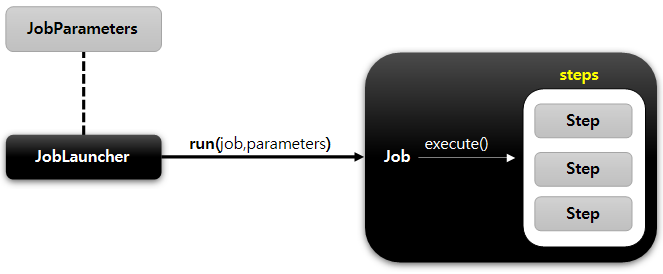 - JobLauncher에서 JobParameters가 가지고 있는 인자를 받아 Job을 실행시킨다.