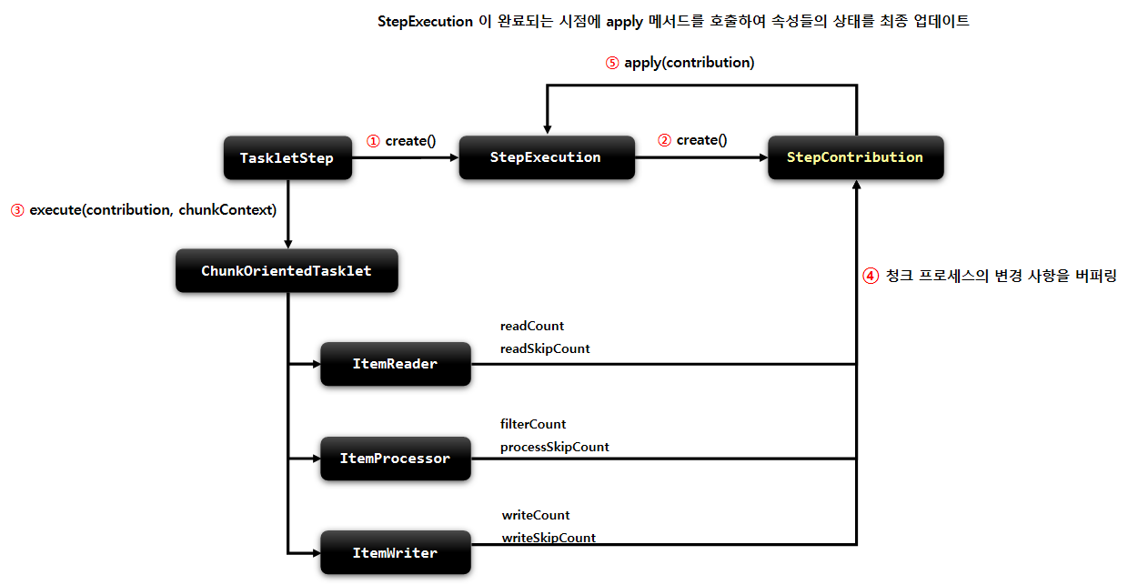 - StepExecution이 내부적으로 StepContribution을 생성한다.