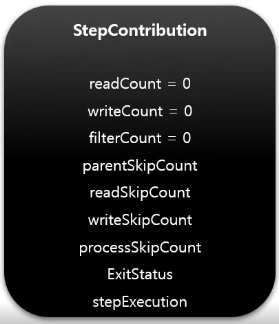 - 각 ItemReader, ItemProcessor, ItemWriter의 기록한 내용을 수행한 시점마다 StepContribution에 저장된다.