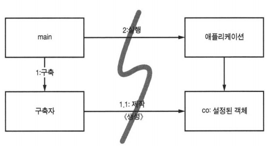 - 애플리케이션은 main이나 객체가 생성되는 과정을 전혀 모르고 생성된 객체를 사용할 뿐이다.