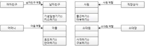 - 여자친구를 만날 때는 남자친구 역할만 수행하고, 직장 상사 앞에서는 사원 역할만 수행하도록 제한한다.