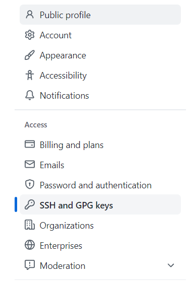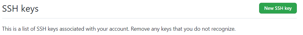 이후 좌측 내비게이션 바에서 SSH and GPG keys에 진입하여 SSH Keys의 New SSH Key를 클릭한다.