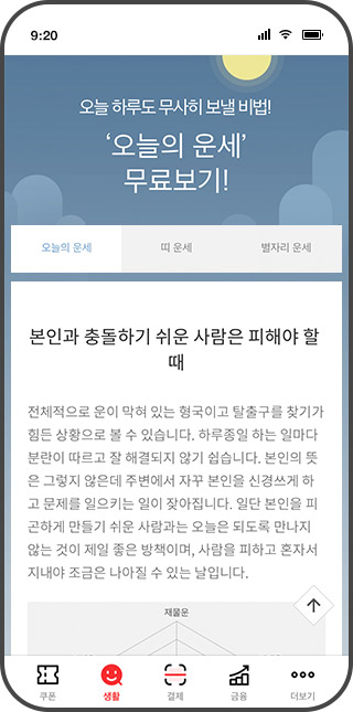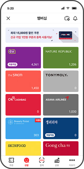 멤버십과 적립 또한 제공하고 있으며, 멤버십에서는 하나의 바코드로 여러 멤버십을 등록할 수 있는 카카오페이와는 달리 제휴 멤버십 카드를 하나하나 등록하여 사용할 수 있습니다. 마찬가지로 제휴사 쇼핑몰에서 적립할 수 있는 포인트 제도까지 제공하고 있으며, 사주 정보를 입력하면 한해 토정비결과 매일 달라지는 오늘에 운세, 띠 운세, 별자리 운세 등 소소한 기능까지 제공하고 있습니다.