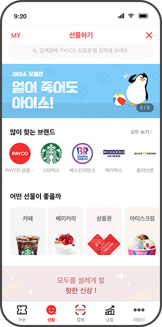 페이코는 페이코 앱 안에서 자체적으로 생활 기능을 제공하고 있습니다. 카카오페이와 유사한 기능들을 앱을 통해 제공하고 있는데요. 모바일 상품권을 구매, 선물할 수 있는 선물하기 기능과, 상품 검색을 통해 쇼핑 기능부터 페이코의 제휴사의 배달까지 다양한 기능이 있습니다. 또한 지방세 납부 등 청구서까지 카카오 페이와 매우 유사한 기능들을 제공하고 있습니다.