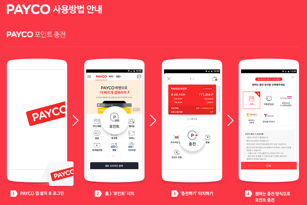페이코는 온라인 결제, 오프라인 결제 모두 지원하는 앱으로 신용카드, 체크카드, 계좌, 휴대폰을 페이코 앱에 등록하면 온라인, 오프라인 결제가 가능합니다. 물론 페이코 가맹점에서만 해당합니다. 온라인 결제는 앱 결제와 웹 결제로 크게 두 가지로 분류되는데, 모바일 환경에서는 페이코 앱으로 결제할 수 있으며, PC 환경에서는 웹에서 페이코 로그인 후 결제 비밀번호를 입력하여 결제가 가능합니다.